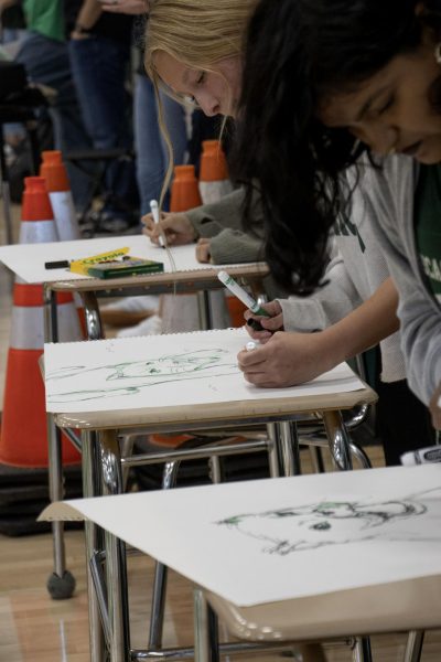In the art competition, one student from each class presented their artwork of a panther for our school mascot, the panther. The freshman class won the art competition, with the sophomores earning second place.
